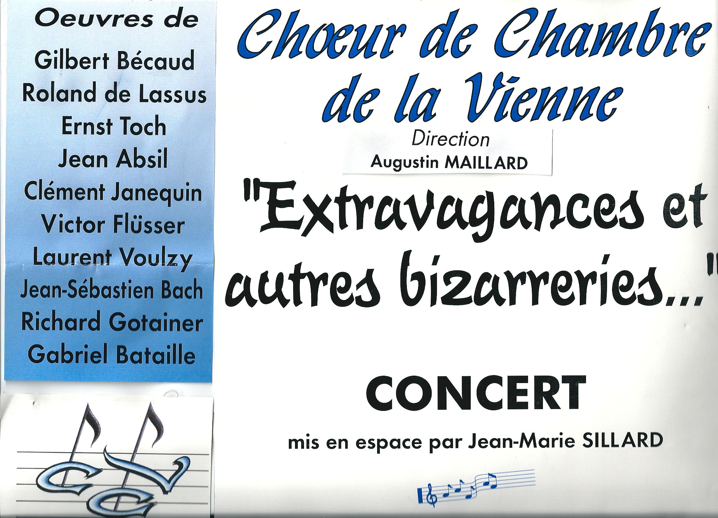 Le « Chœur de Chambre de la Vienne” est dirigé par Augustin Maillard et soutenu par les instances culturelles et politiques avec la volonté de créer un « Ensemble Vocal » à l’échelle départementale. Cet ensemble mène un projet de diffusion très riche qui s’étend d’animations en milieu rural à des concerts dans des villes importantes de la région mais aussi hors région et à l’étranger.